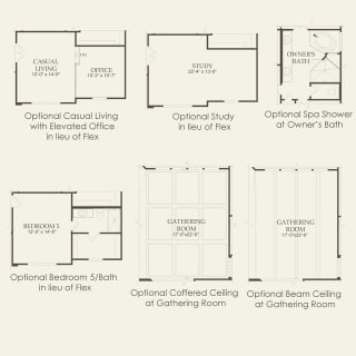 - Ceiling Fans w/ 4-Light Kit in Gathering Room, Owner’s Suite, and Game Room (Per Plan)